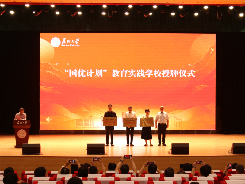 在苏州市教育局的大力支持下,江苏省苏州中学校、苏州工业园区星海实验高级中学和苏州大学附属中学成为“国优计划”首批教育实践学校。会上,姚建林为三所学校授牌。