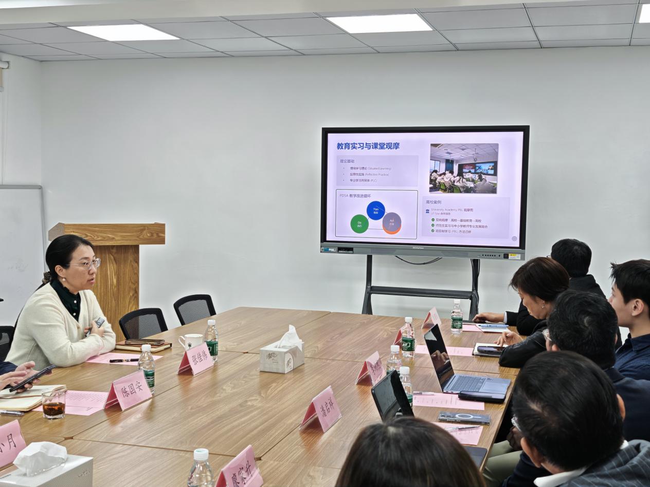 交流中,陈国安院长分享四大核心:一是学院发展脉络,从传统师范到探索“互联网+”产教融合;二是人才培养的教育教学改革,厚植师范教育情怀,创建“大国良师”工作坊、入选“国优计划”、构建“互联网+教育”双师互动系统及建设师范技能实训中心等;三是新教育教改班“模拟学校”实践,推行“每月中小学四阶段循环”;四是校地合作,协同育人,探索中小学、高校、政府或事业单位、企业四方协同发展新模式。