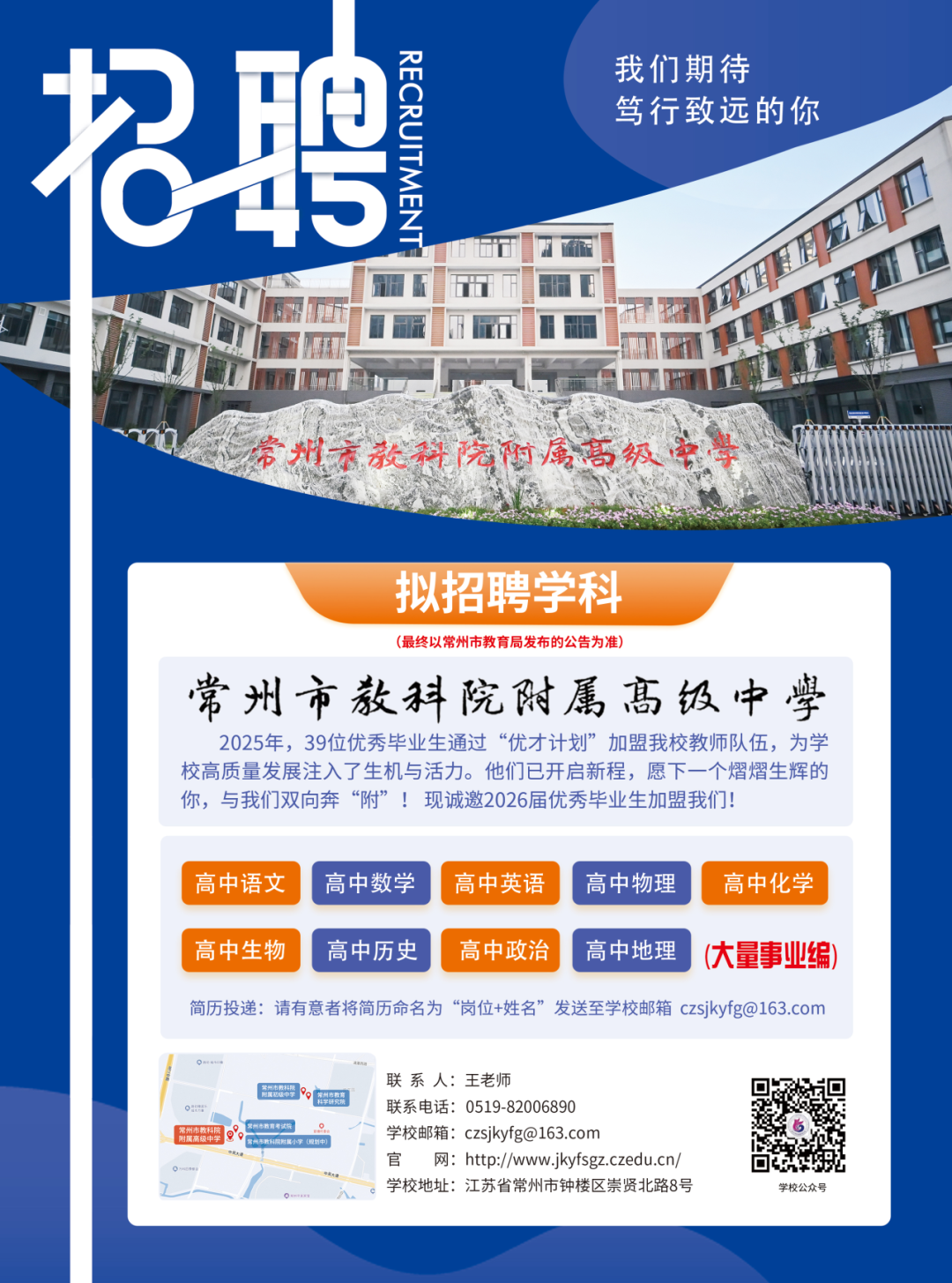 (宣讲会)常州市教科院附属高级中学教师招聘宣讲会