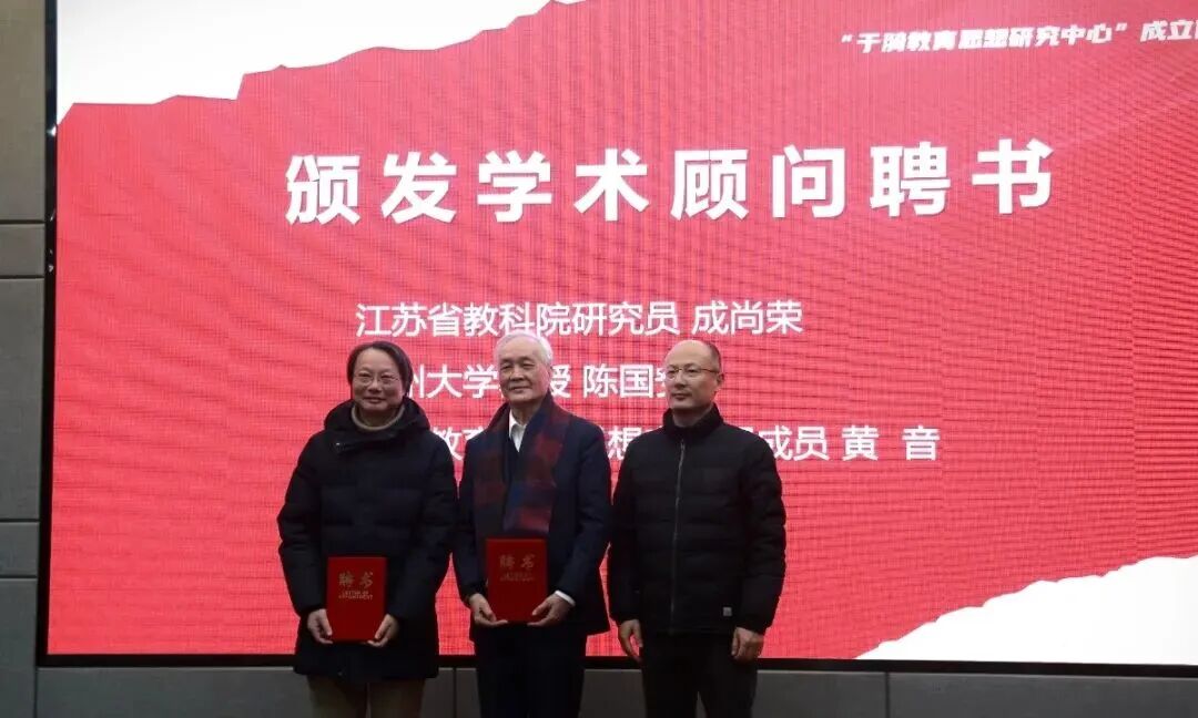 江苏省教育科学研究院研究员成尚荣、苏州大学师范学院院长兼基础教育管理办公室主任陈国安、于漪教育教学思想宣讲团成员、同济大学附属新江湾城实验学校副校长黄音受聘作为该研究中心的学术顾问。